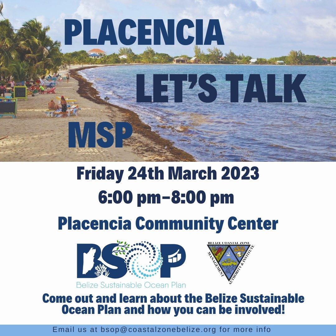 On Friday March 24th, 2023, from 6:00 pm – 8:00 pm, the Coastal Zone Management Authority & Institute will be hosting its BSOP Community Outreach Meeting at the Placencia Community Center. Come out and learn about the Marine Spatial Plan for Belize and how you can be involved.